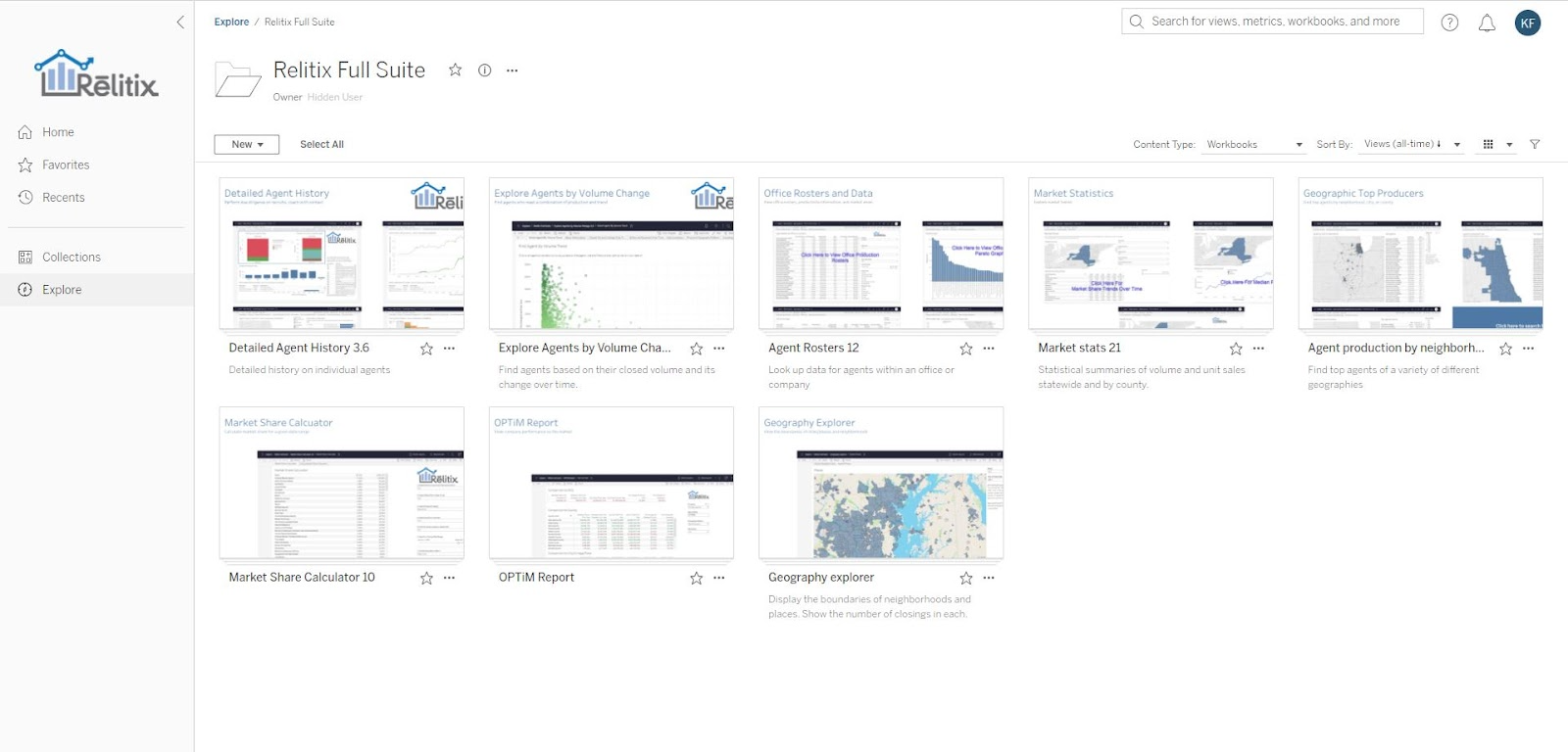 First, if you ever log in to the system and find yourself looking at a view that is different from this main screen when you open the tab, you can click on the Relitix logo at the top of the page. This will reset the view to the default setting that should be very familiar to you.