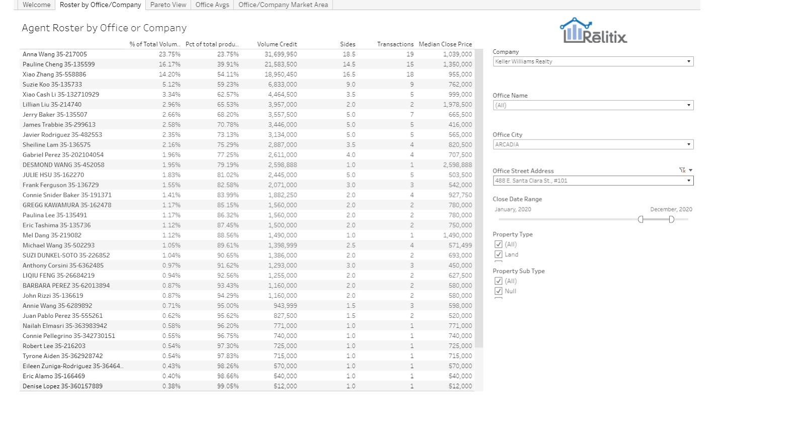 This workbook is a great way for you to take a look at individual offices in your MLS and the production of their agents in those offices.