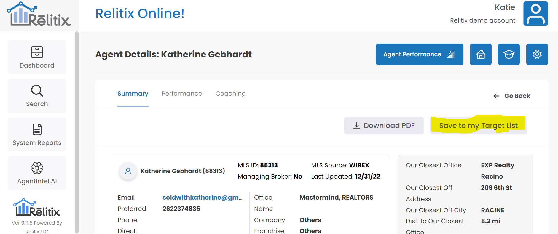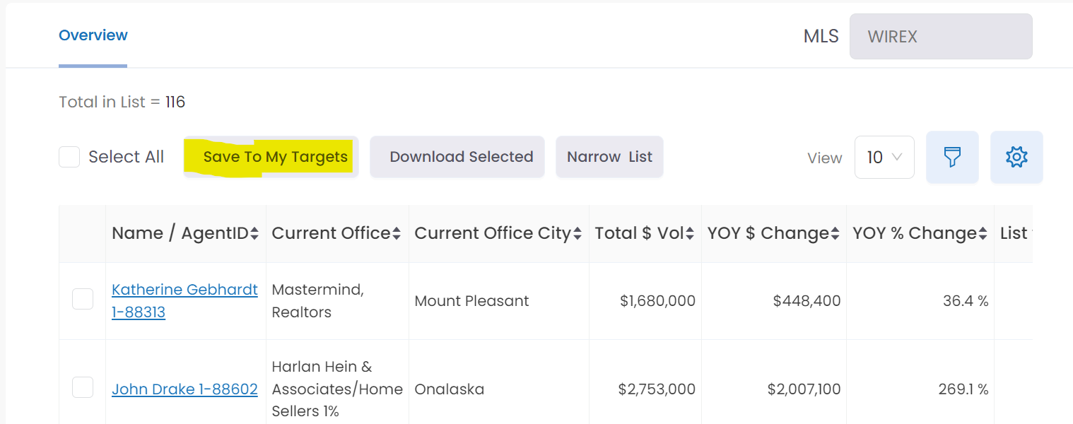 Remember, If an agent works in your office, they will automatically populate in under "My Retention Targets" and if not, they will be under "My Recruiting Targets".