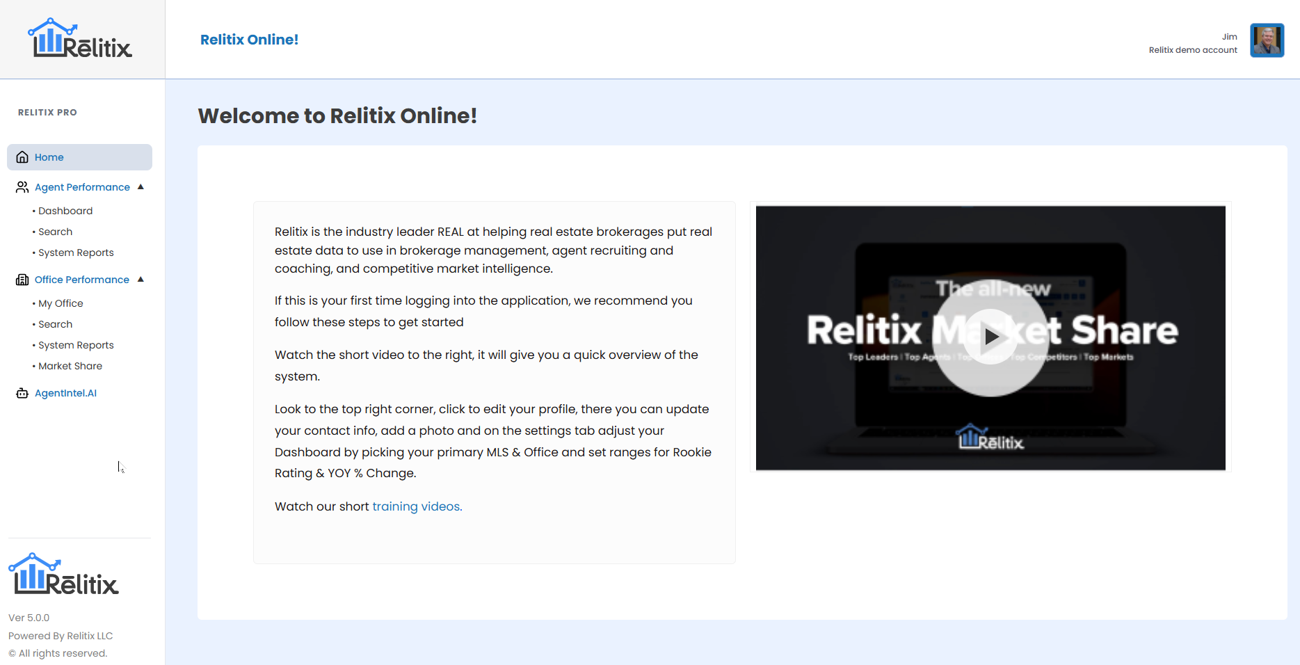 Relitix menu navigation has been updated. Main menu selections for agent and office performance were moved to the left hand side of the portal, providing quicker access to modules and switching between tasks.
