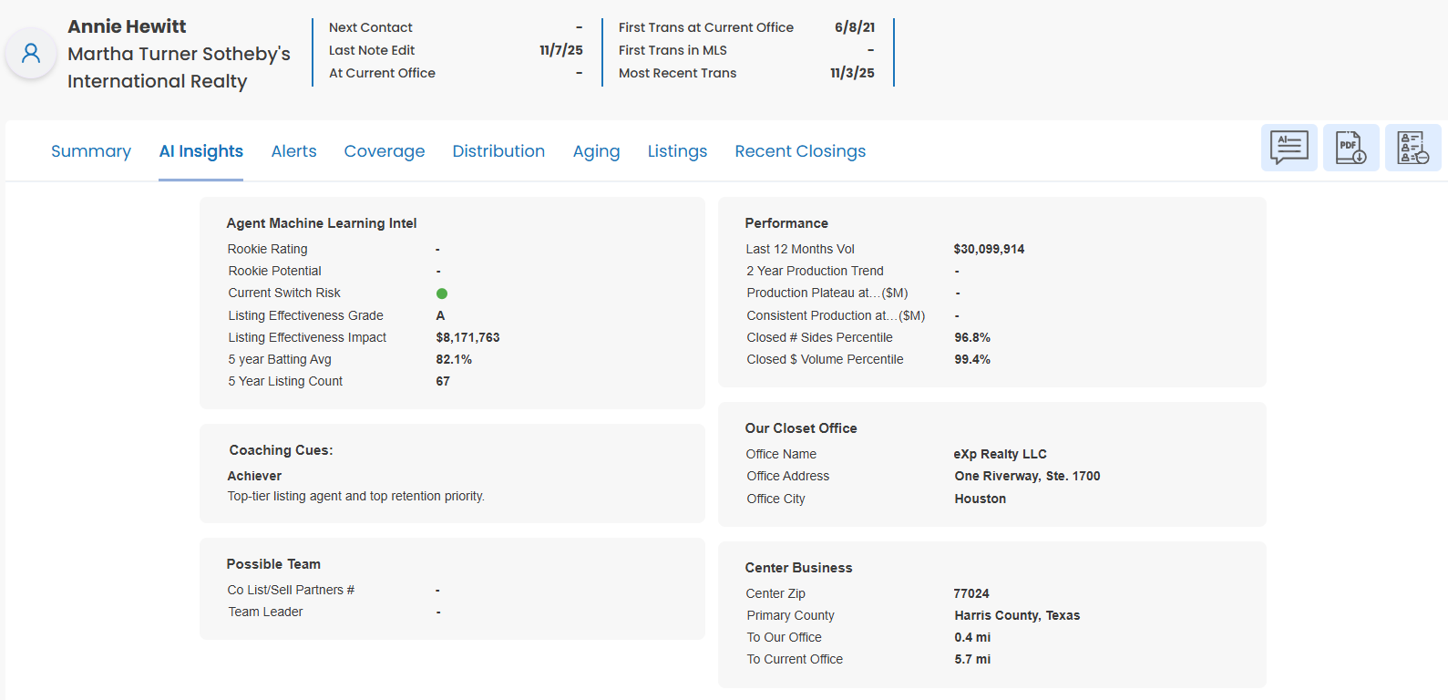 We moved General Notes and Next Contact Date to the Agent Summary tab. This makes it easier to see important agent information in one place. Because of this change, the old tab was renamed to “Alerts” to reflect the information housed there.
